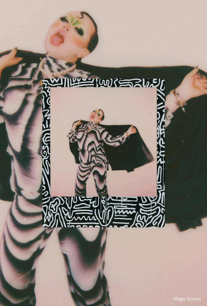 Miggy Gomez (@miggygomez) [is] a non-binary and queer makeup artist in San Diego. Miggy creates art that continues to blow me away. Their face is their canvas and it pours over with queer energy. The self expression that Miggy exudes is so important because, just like drag, their art allows no binary to exist when you can transform yourself into anything you want.