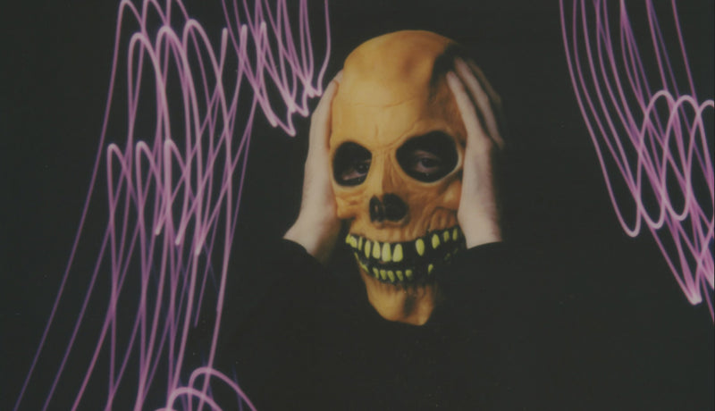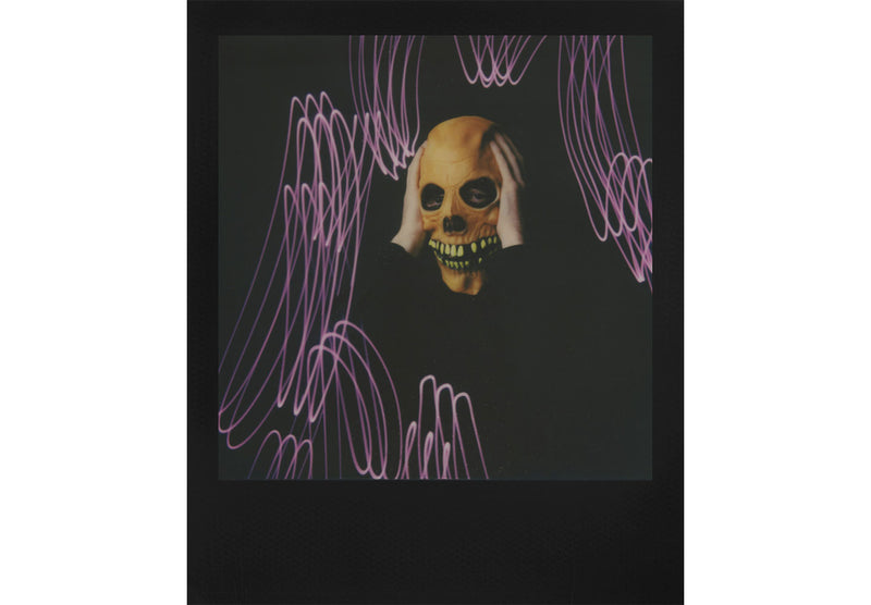 Translation missing: en.In a dark room, start the long exposure on your <a href="/collections/instant-cameras">Polaroid camera</a>. Take a flashlight and slowly move it around the face of your subject to freeze them in frame. Turn off the flashlight, and then take another flashlight with a colored filter and start drawing in the air. End the exposure, and the insanity.